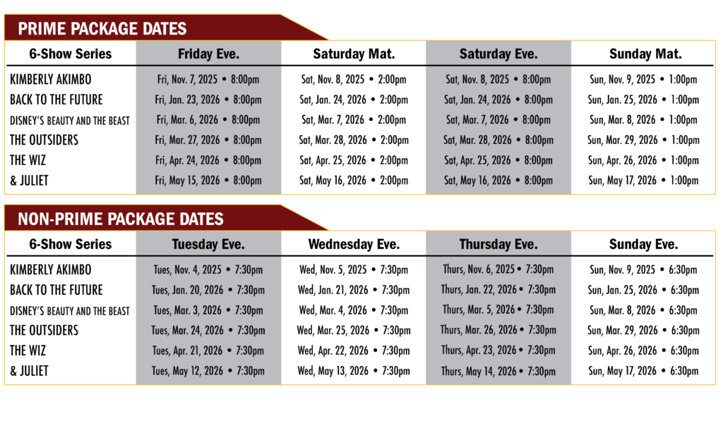 *Dates and show titles subject to change. Some package fees are non-refundable.