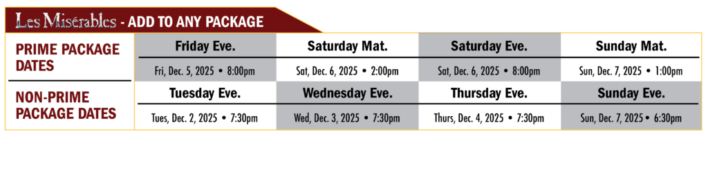 *Dates and show titles subject to change. Some package fees are non-refundable.